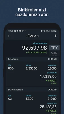 আপনার ব্যক্তিগত আর্থিক লক্ষ্য পূরণের জন্য এই অ্যাপটি একটি অনন্য পোর্টফোলিও পাতা প্রদান করে। এখানে আপনি আপনার পছন্দের যেকোনো মুদ্রা, সোনা বা অন্যান্য প্রতীক যোগ করে এক নজরে সেগুলোর লাইভ অবস্থা পর্যবেক্ষণ করতে পারবেন। 'ওয়ালেট' সুবিধার মাধ্যমে আপনার ব্যাংক অ্যাকাউন্টে থাকা বা ব্যক্তিগতভাবে সঞ্চিত বিনিয়োগগুলোর লাভ-ক্ষতির হিসেব মুহূর্তেই ট্র্যাক করুন। দ্রুত গণনার জন্য একটি শক্তিশালী মুদ্রা রূপান্তরকারী (কারেন্সি কনভার্টার) রয়েছে। এছাড়াও, আপনার পছন্দের মুদ্রা বা সোনার দামে কোনো পরিবর্তন এলে তাৎক্ষণিক বিজ্ঞপ্তি পাওয়ার জন্য আপনি অনির্দিষ্ট সংখ্যক অ্যালার্ম সেট করতে পারেন। আপনার পোর্টফোলিওকে আরও সহজলভ্য করতে, লাইভ মুদ্রা উইজেট আপনার ফোনের হোমস্ক্রিনে নিয়ে আসে গুরুত্বপূর্ণ সব তথ্য।