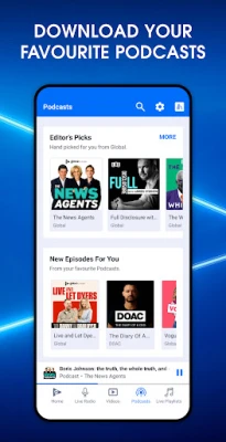 আমাদের সমৃদ্ধ পডকাস্ট লাইব্রেরিতে প্রবেশ করে অডিওর এক বিশাল জগতে ডুব দিন। The News Agents, My Therapist Ghosted Me এবং The Sports Agents-এর মতো মূল শো থেকে শুরু করে Diary of a CEO ও The Rest is Politics-এর মতো বিশ্বব্যাপী জনপ্রিয় পডকাস্টগুলিও এখানে পাবেন। আপনার অভিজ্ঞতাকে সম্পূর্ণ ব্যক্তিগত করতে, Global Player একটি কাস্টমাইজড হোমপেজ অফার করে। এখানে আপনি আপনার প্রিয় স্টেশনগুলি সাজিয়ে রাখতে পারবেন, মিস করা যেকোনো লাইভ অনুষ্ঠান সহজেই খুঁজে পাবেন এবং আপনার রুচি অনুযায়ী তৈরি করা সঙ্গীত ও পডকাস্ট আবিষ্কার করতে পারবেন।