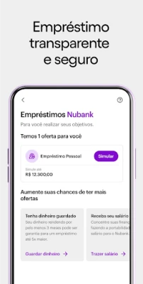 Nubank-এ শুধু এগুলোই নয়, আপনার জন্য আরও অনেক কিছু অপেক্ষা করছে। বিভিন্ন ধরণের বিনিয়োগের সুযোগ থেকে শুরু করে আপনার প্রিয়জন ও সম্পদের জন্য বীমা সুরক্ষাও এখানে উপলব্ধ। "Caixinhas" ফিচার ব্যবহার করে আপনি আপনার অর্থ সুরক্ষিত রাখতে পারবেন এবং আকর্ষণীয় লভ্যাংশ পাবেন। প্রয়োজনে সহজ ও ন্যায্য ঋণ গ্রহণ করুন, এমনকি ১৮ বছরের কম বয়সীদের জন্যও এখানে অ্যাকাউন্ট খোলার সুবিধা আছে। যেকোনো প্রয়োজনে, Nubank-এর ২৪/৭ মানব সহায়তায় সর্বদা আপনার পাশে আছে। এছাড়াও, আপনার অনুমতি সাপেক্ষে সন্দেহজনক ফোন কল থেকে সুরক্ষা প্রদান করে আপনার নিরাপত্তা নিশ্চিত করা হয়।